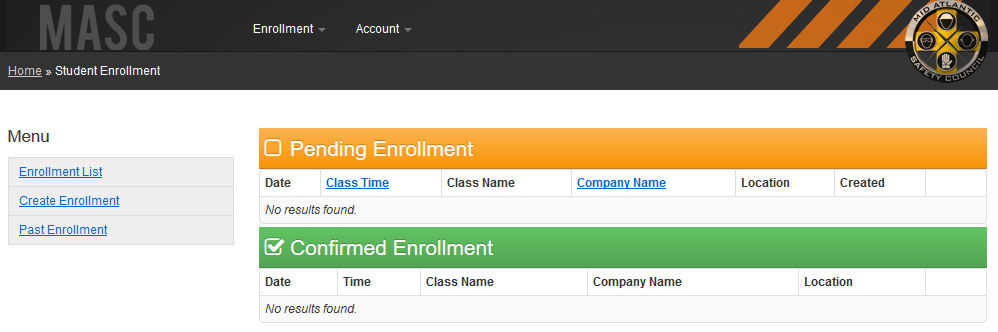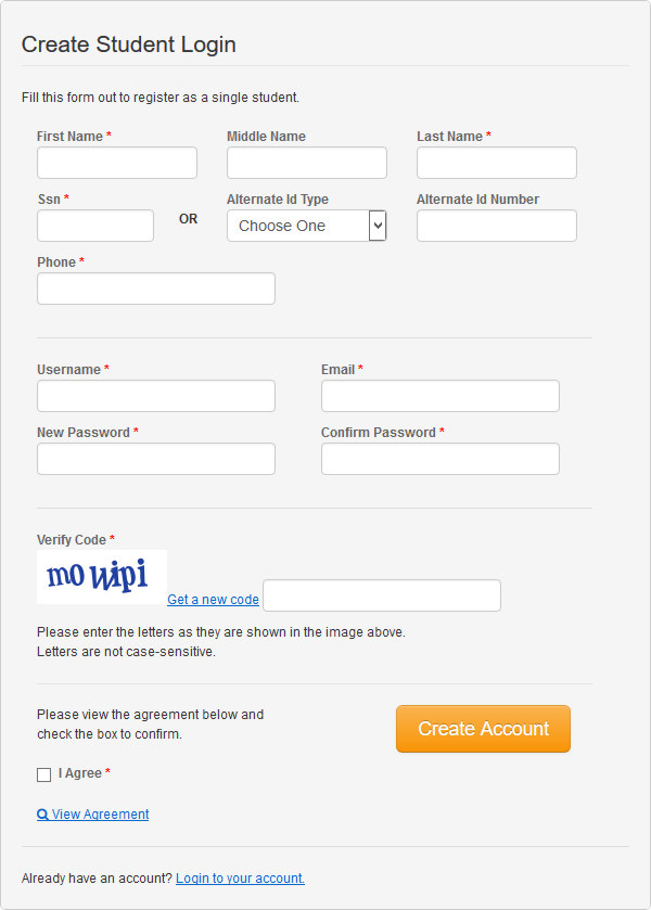 If the information was submitted successfully, you should be automatically logged in and directly routed to the student enrollment page. You should also receive an email confirmation of your newly created account.