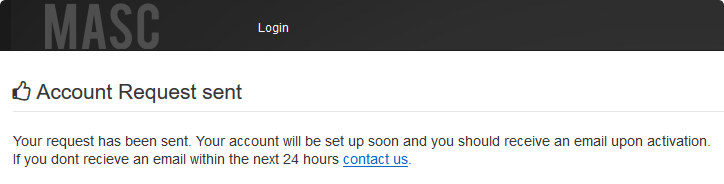 If the application was submitted successfully, you should see a notification that the account request was sent. You should also receive an email notification that your request was received, and a second confirmation email will follow once your application has been reviewed and approved.